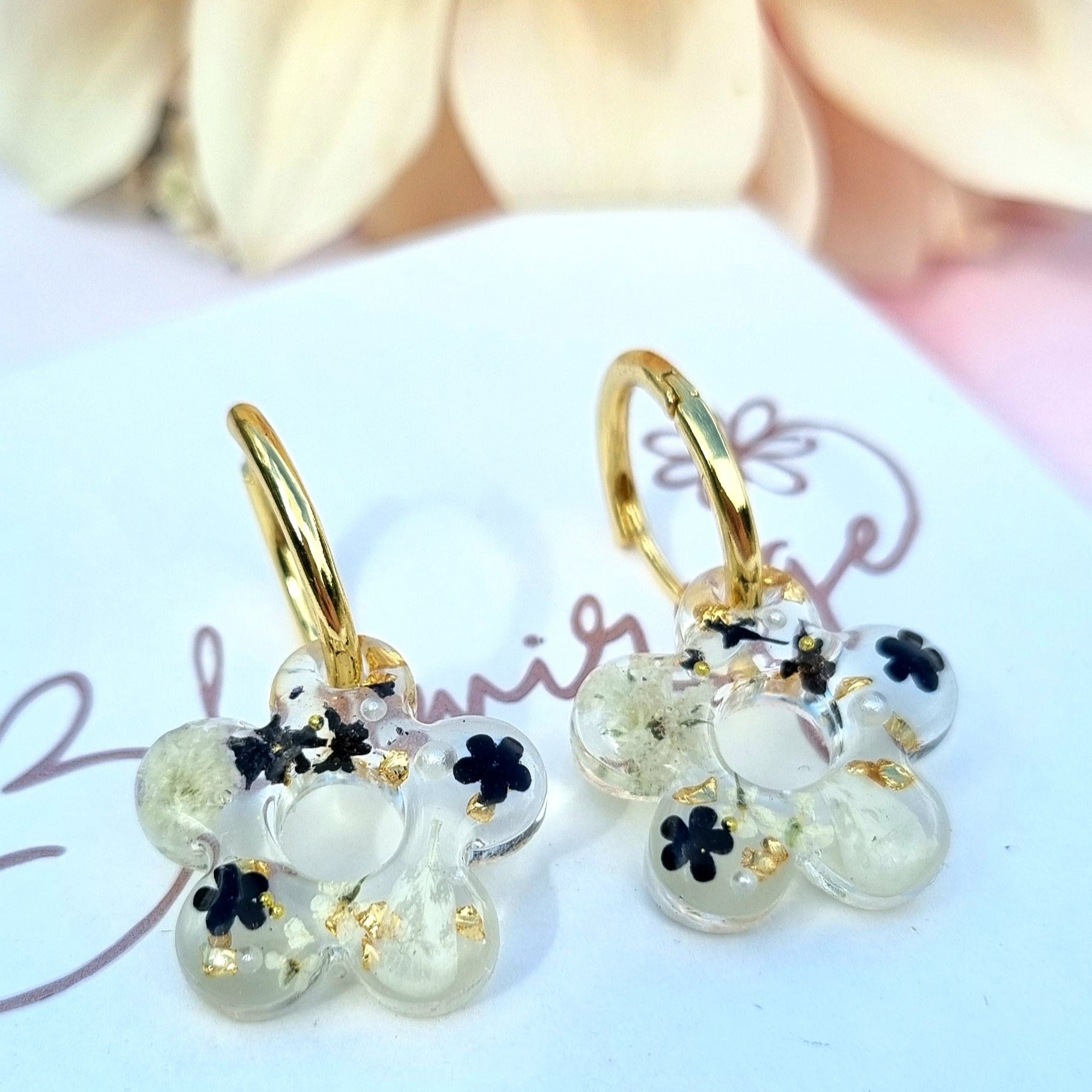 "Daisy" Bloom Black & Gold flower hoop earrings